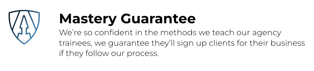 No catch. No loopholes. No fine print. If you show up, follow the system, and do the work, you'll get results. If for some reason you don’t, our team will take over your marketing campaigns, your sales processes, your entire business... and run it for you until you do. We’re so confident in our system that we’re willing to put our own time, money, and resources on the line to back it up. No one else is offering this because no one else is this sure of their results.